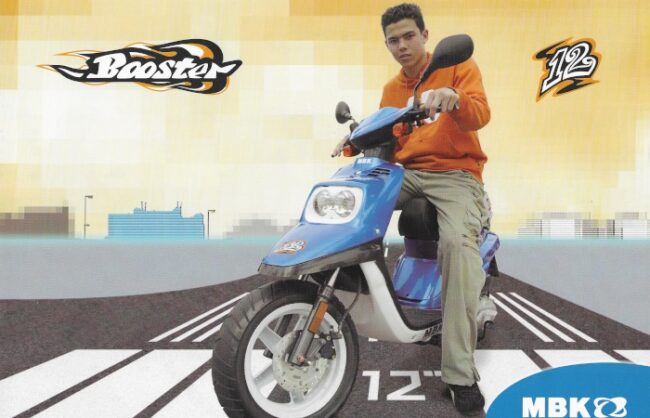 Voici la brochure du MBK Booster Spirit 12 de 2003 proposé en Bleu Candy (CB).